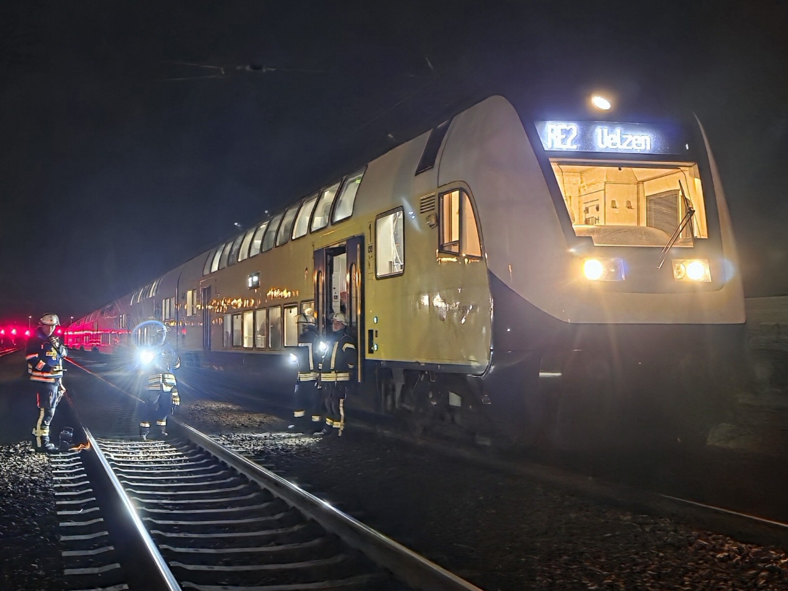 In der Nacht mussten aufgrund der Störung bereits über 140 Passagiere aus einem Regionalzug bei Celle evakuiert werden. Durch die Einsatzkräfte der Feuerwehr wurde dabei eine Strecke von rund 500 Metern notdürftig ausgeleuchtet. Im Anschluss wurden die Fahrgäste in Kleingruppen zum Bahnsteigbereich des Celler Bahnhofes begleitet, wie die Feuerwehr informierte.