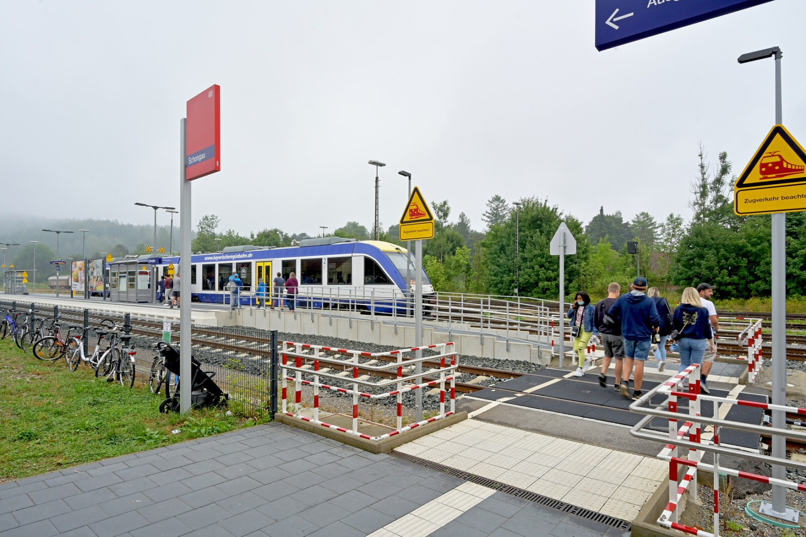 Der Zugang zu den Bahnsteigen des Bahnhofs Schongau im Regionalbereich Süd nach dem erfolgten Umbau (Foto am 06. August 2022), © Deutsche Bahn AG / Christian Bedeschinski (Symbolbild)